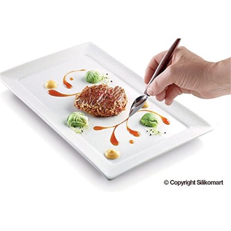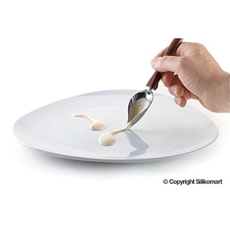Pratici cucchiai per realizzare invitanti decorazioni o firme con salse salate, succo di pomodoro, aceto balsamico, emulsioni di verdura o pesce, purea stesa, sugo di carne, salsa olandese, coulis di frutta, salsa al cioccolato, crema inglese... Modo d'uso: in un piccolo recipiente prelevare con Spoon Decor una piccola quantità di salsa e deporre la punta del cucchiaio verticalmente rispetto al vostro piatto, facendo scorrere la punta sulla porcellana .