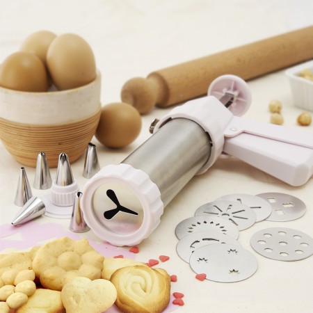 Pistola Spara biscotti in acciaio con punte e forme intercambiabili che ti permettono di cambiare tipologia di biscotto.