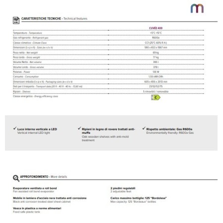 Vetrina mono-temperatura per vini +5°C +15°C CUVE