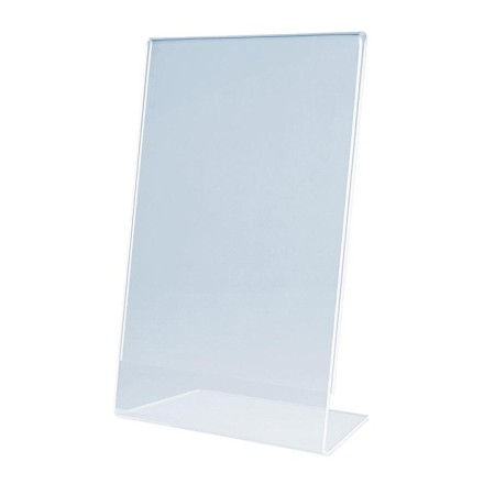 Espositore da tavolo formato A4 verticale inclinato in plexiglass misura L. 22 X H.30 CM venduto singolo pezzo Monofacciale adatto per comunicazioni porta avvisi/porta foto particolarmente adatto per negozi,showroom uffici in genere eggermente inclinato pe rpoter peremttere maggiore visibilità all'avviso realizzato in un unico pezzo piegato come foto ealizzato in Italia prodotto di ottima manifattura plexiglass colato spessore 2 mm trasparente