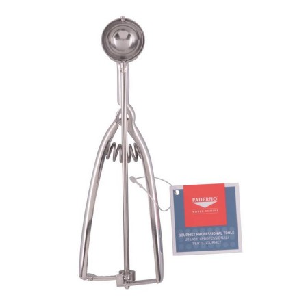 Il porzionatore Paderno è ideale per realizzare palline di gelato artigianale o industriale, dal pozzetto o dalla vaschetta, servendole da sole o guarnite con frutta, canditi, granella e glasse.