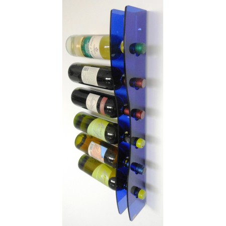 Portabottiglie verticale a parete in plexiglass blu 6 posti